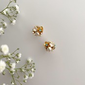 ✴︎こちらのデザインはパーツを糸で縫って制作しています。お花型のメタルパーツは中央部分を縫い留めているため、触るとお花のパーツや中央のビジューがくるっと回ることがあります。予めご了承ください。